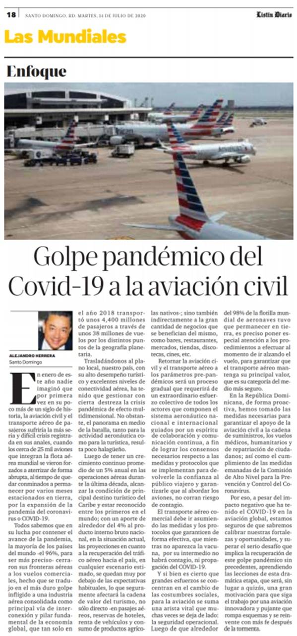 La reflexión es de Alejandro Herrera, director general del Instituto Dominicano de Aviación Civil (IDAC), al abordar lo que considera la más seria y difícil crisis registrada en la aviación en algo más que el último siglo.
