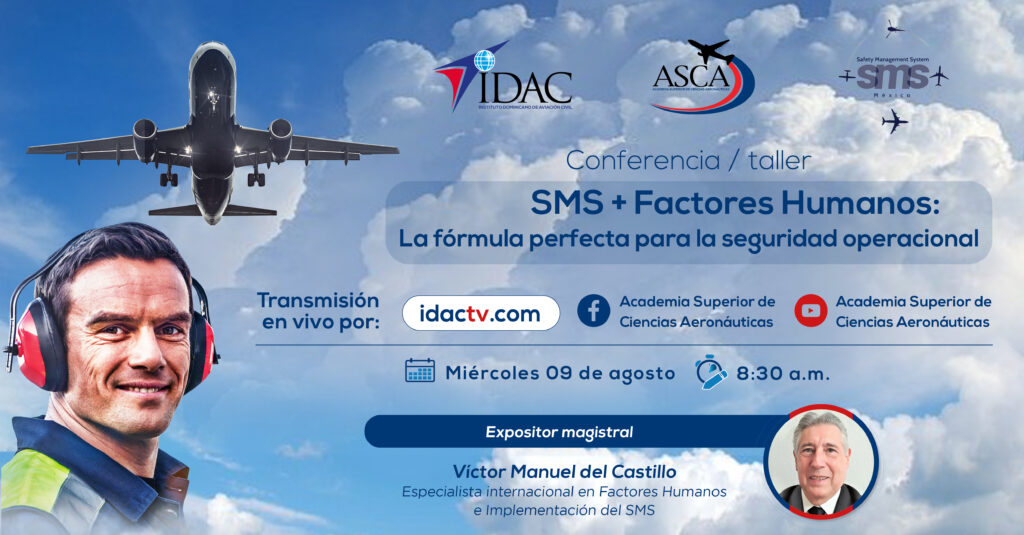ASCA-IDAC: Invitación Conferencia/Taller SMS+ Factores Humanos: La fórmula perfecta para la seguridad operacional