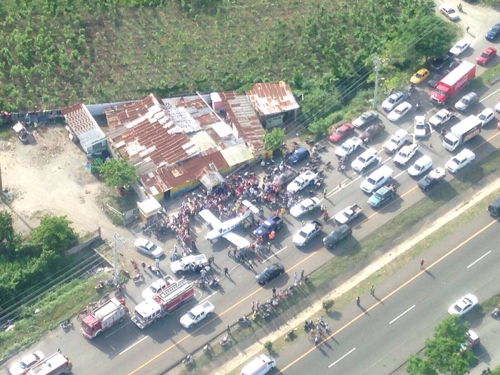 Técnicos del Instituto Dominicano de Aviación Civil (IDAC) confirmaron el percance de la aeronave, que ocurrió a las 3:15 de la tarde de este sábado en la autopista Duarte, próximo a La Vega.