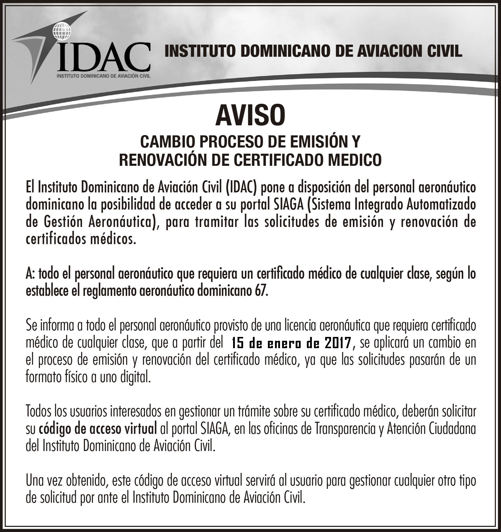 Aviso: Cambio Proceso de Emisión y Renovación de Certificado Médico noviembre 8, 2016 Dirección de Comunicaciones - Avisos, Noticias Favor descargar: [prettyfilelist type=»pdf,xls,doc,zip,ppt,img,mp3″ filestoshow=»8187,» hidefilter=»true» hidesort=»true» hidesearch=»true» openinnew=»true» filesPerPage=»3″]