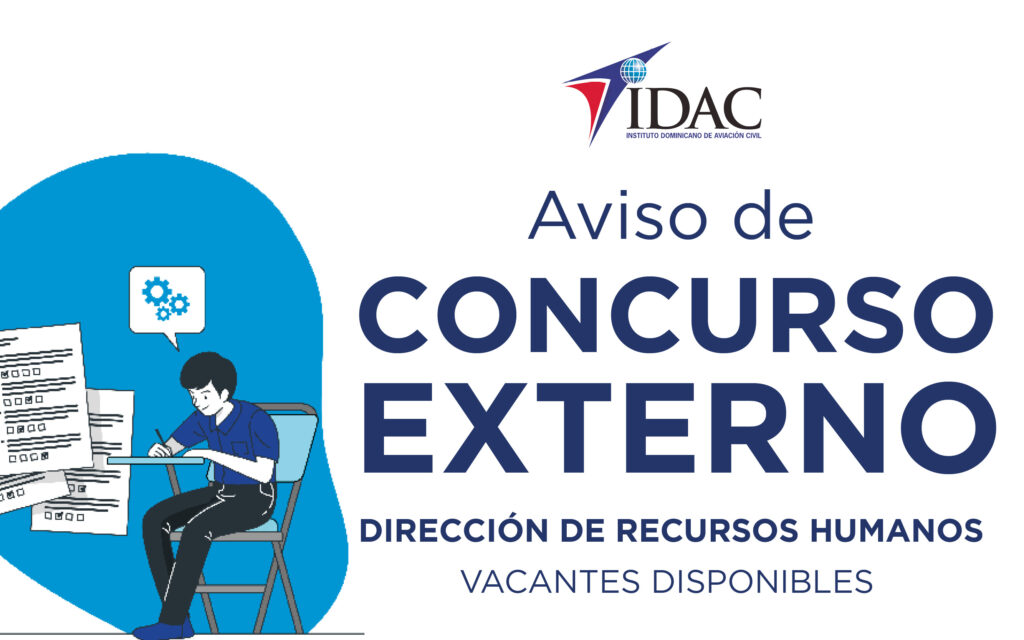 Aviso de Concurso Externo IDAC septiembre 5, 2022 Dirección de Comunicaciones - Noticias A continuación, Aviso de Concurso Externo del Instituto Dominicano de Aviación Civil (IDAC), para cubrir vacantes para los cargos descritos en la descarga: