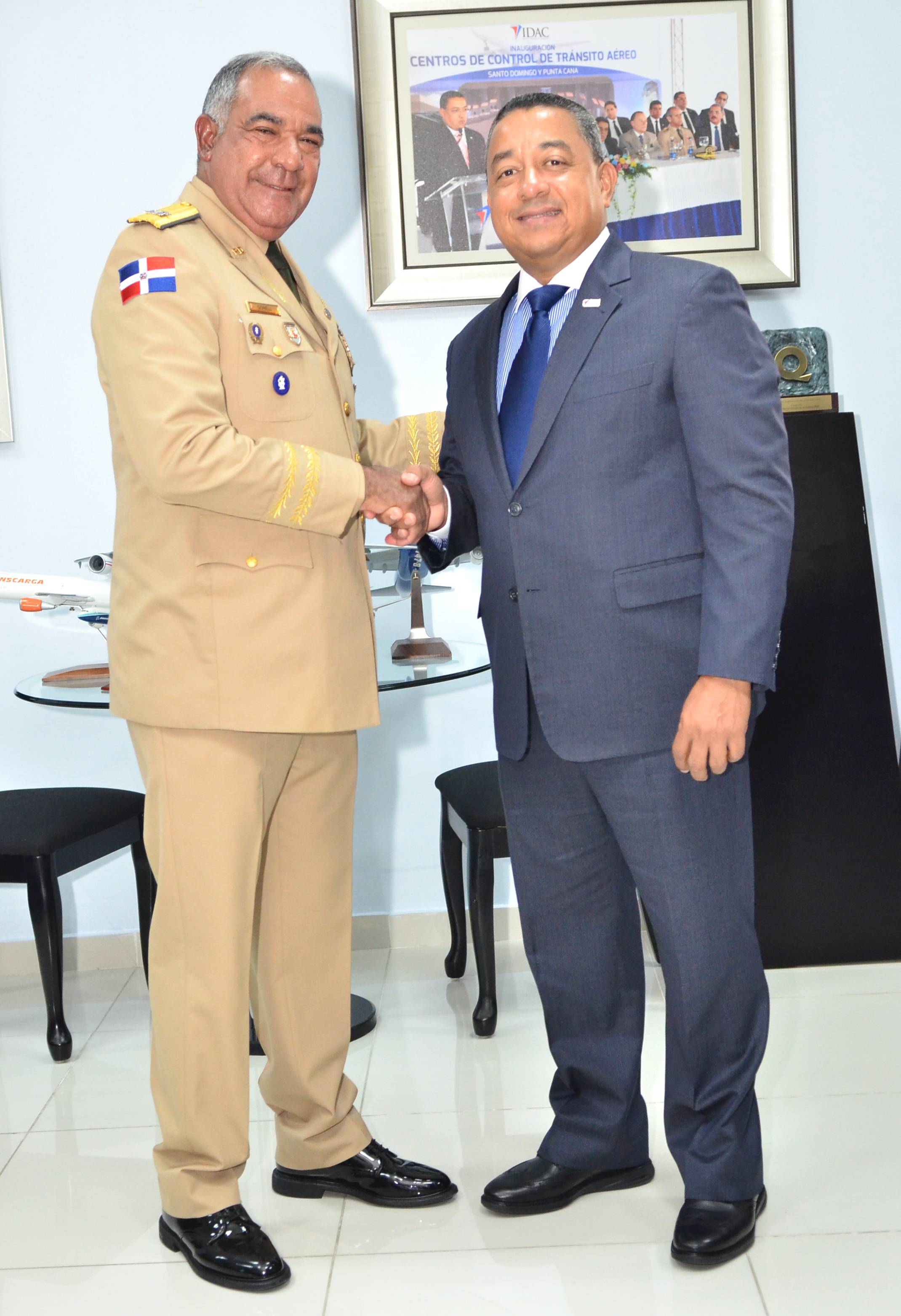 El director general del Instituto Dominicano de Aviación Civil, Dr. Alejandro Herrera, recibió en su despacho de la sede central de la Institución en la avenida México esquina 30 de Marzo al comandante general del Ejército de República Dominicana (ERD), mayor general Estanislao Gonell Regalado, en una amena visita de cortesía. Un acuerdo de cooperación e intercambio interinstitucional guía las relaciones entre ambas instituciones.