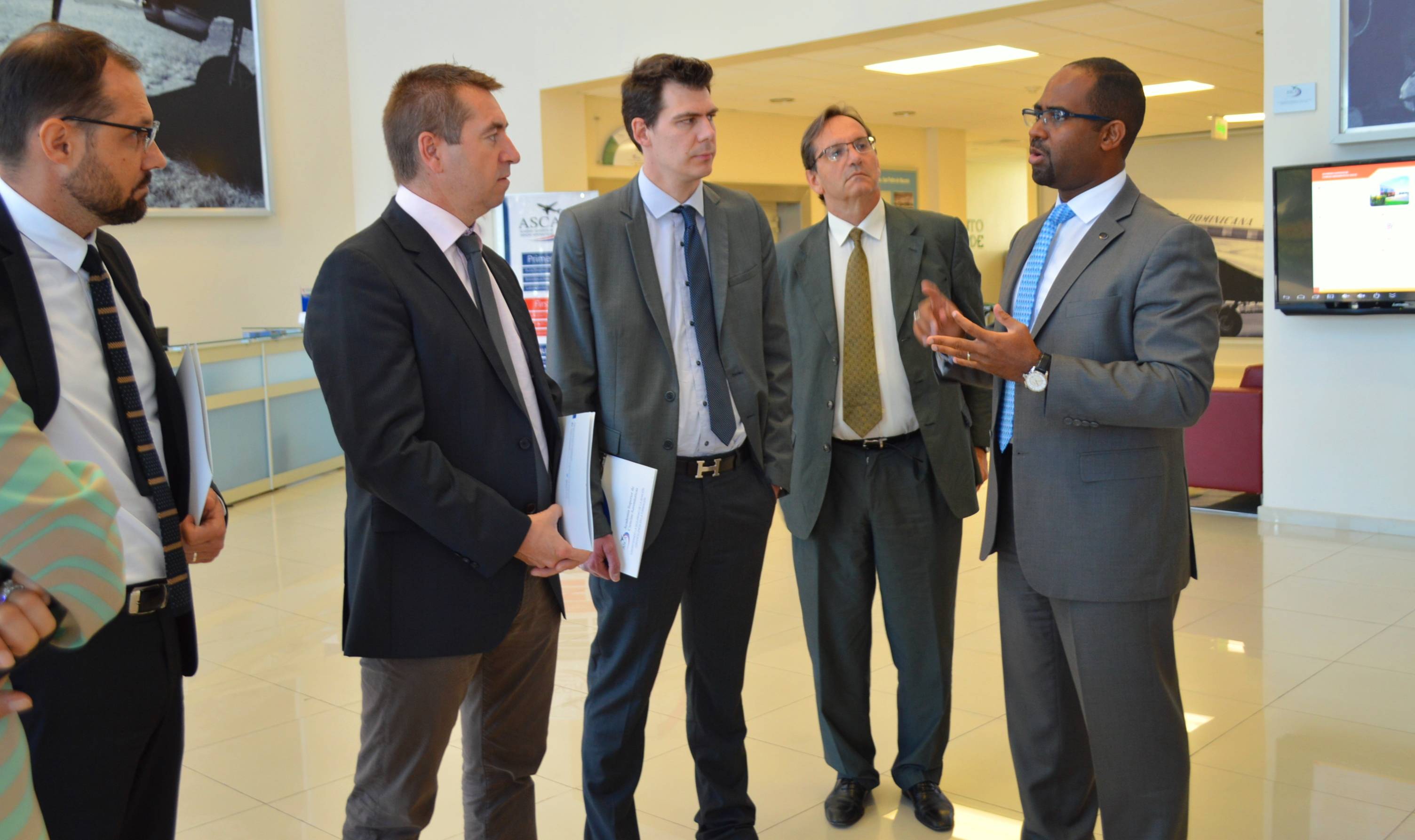 La comitiva, integrada por Jean-Pierre Gastaud, jefe del Servicio Económico en República Dominicana y Haití en la embajada de Francia en el país; Thomas Plisson, agregado comercial; Stephane Durand, director de Operaciones; y Bastien Bernad, responsable de Proyectos y Servicios de la empresa DSNA Service de Francia, quienes se encuentran en una asistencia técnica para la Oficina Nacional de Aviación Civil de Haití (OFNAC), en Puerto Príncipe, con el interés de conocer el nivel de participación y entrenamiento de los estudiantes haitianos en la ASCA.
