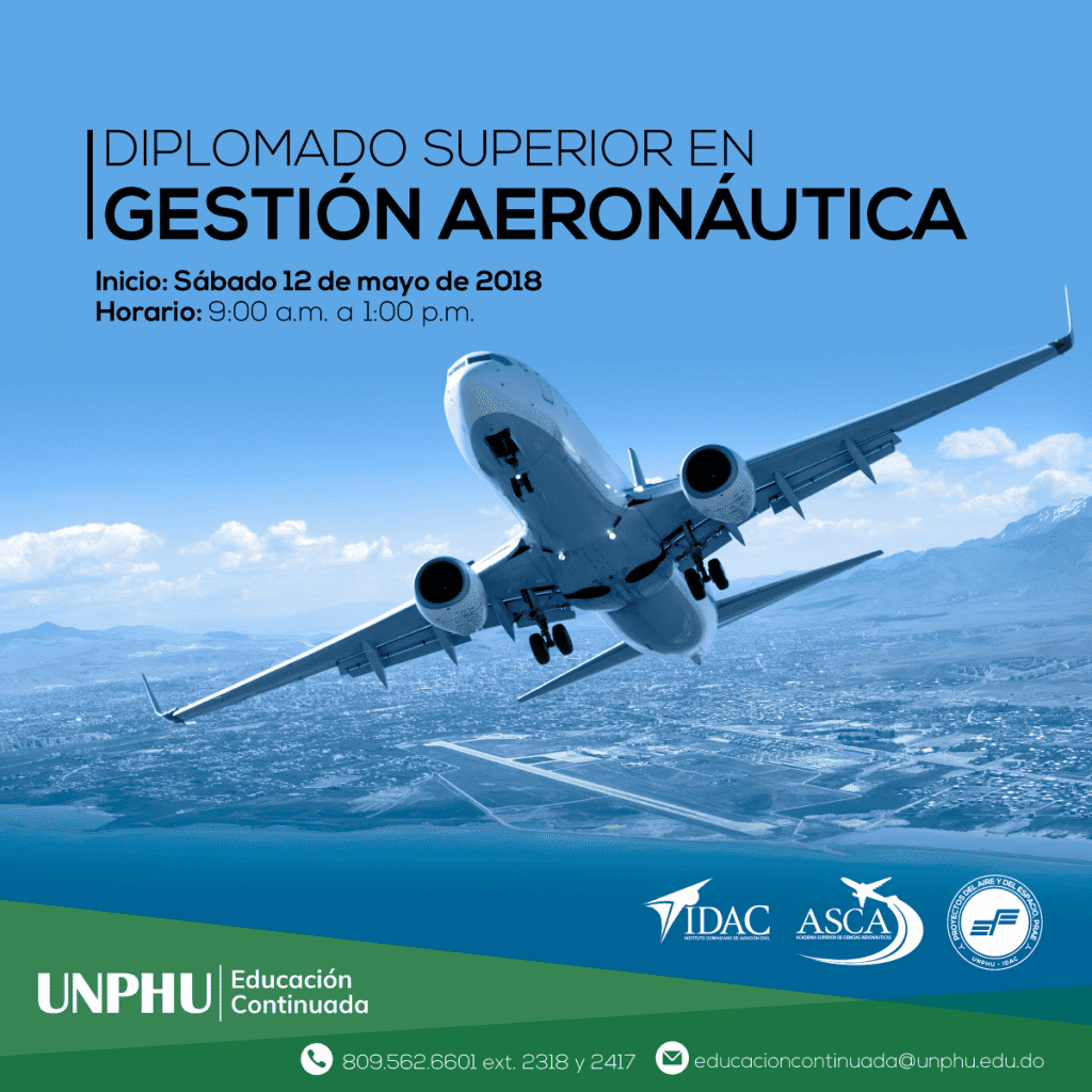 Este programa formativo titulado «Diplomado Superior en Gestión Aeronáutica» ha sido diseñado por la UNPHU y la ASCA del IDAC, para dotar al participante de los conocimientos pertinentes y de vanguardia necesarios para lograr un desempeño óptimo en las funciones y responsabilidades que le competen dentro del sistema aeronáutico, elevando su perfil profesional y fortaleciendo así la industria aérea nacional.