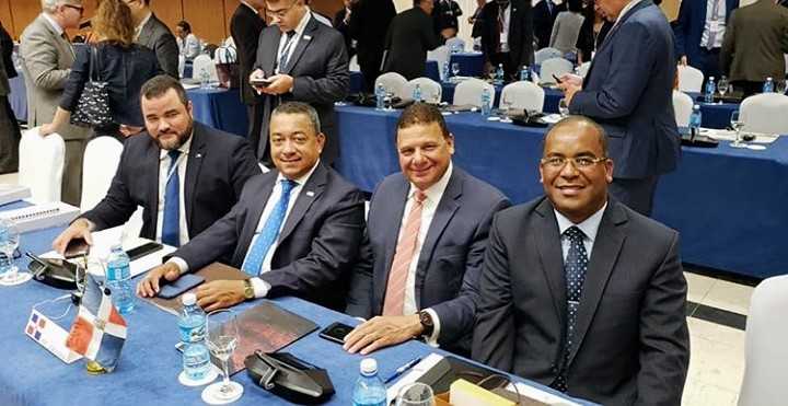 El director general del Instituto Dominicano de Aviación Civil (IDAC), Alejandro Herrera, y Santiago Rosa Martínez, subdirector general del órgano rector de la aviación comercial dominicana, junto al embajador dominicano ante la Organización de Aviación Civil Internacional (OACI) y Octavio Líster, presidente de la Junta de Aviación Civil (JAC) durante la XXIII asamblea de la Comisión Latinoamericana de Aviación Civil (CLAC), celebrada en La Habana, Cuba.