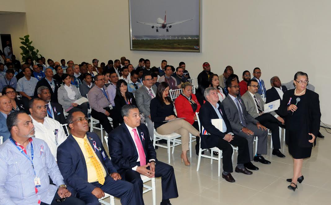 el director de la ASCA Juan César Thomas Burgos, así como Johann Estrada, director de Vigilancia de la Seguridad Operacional; Francisco Bolívar León Paulino, director de Navegación Aérea; Jorge Zayas, gobernador del Complejo Aeronáutico Norge Botello; estudiantes y profesores de la Escuela Primaria de Boca Chica, a quienes se les entregó material didáctico con los ideales de Juan Pablo Duarte.