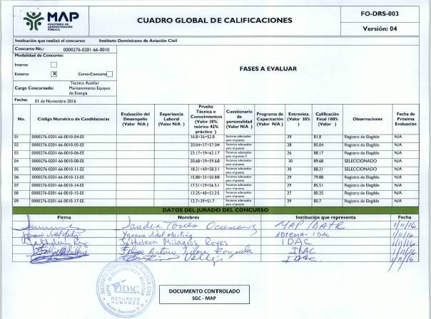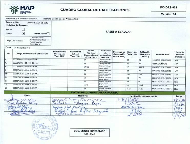A continuación, publicación Cuadro Global de Calificaciones – Concurso: