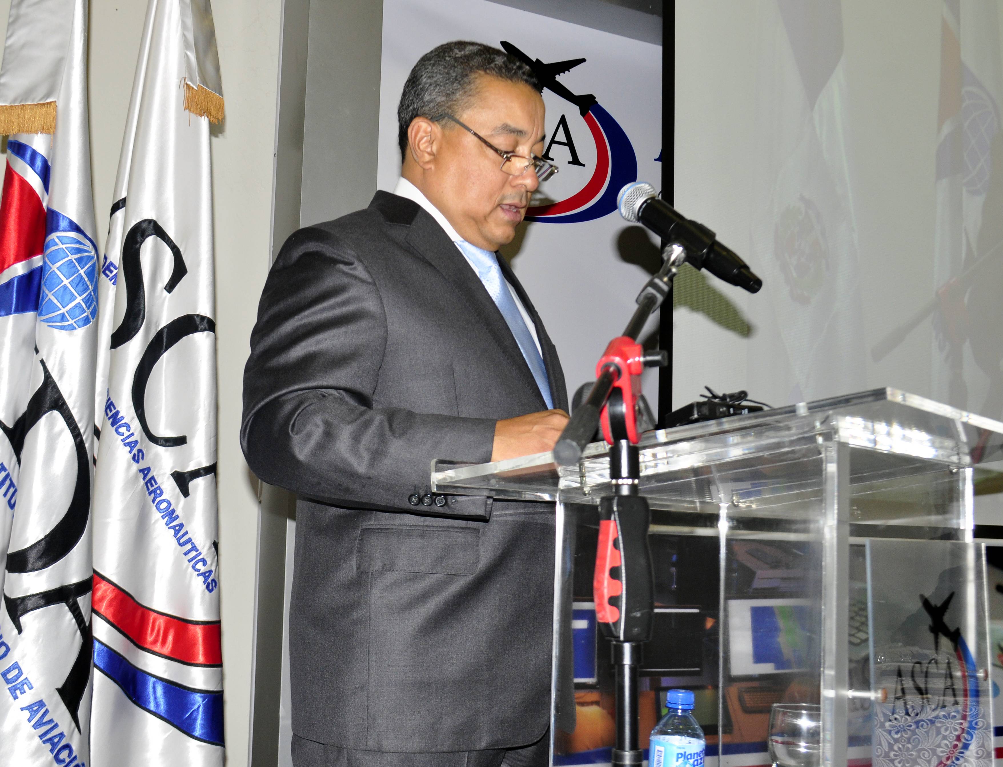 La mesa de honor quedó formada con el Dr. Alejandro Herrera, el director de la OACI para Norteamérica, Centroamérica y el Caribe, Melvin Cintrón, y por Carlos Manzano, viceministro de Administración de Personal (MAP) en representación del ministro Ramón Ventura Camejo, el subdirector general del IDAC Santiago Rosa, el director de Recursos Humanos y organizador del evento Vicente Estrella y el anfitrión Juan César Thomas Burgos, director de la ASCA.