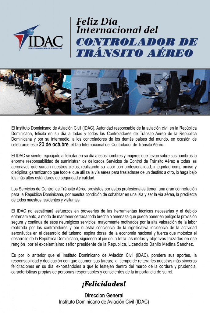 Feliz Día Internacional del Controlador de Tránsito Aéreo octubre 19, 2017 Dirección de Comunicaciones - Avisos
