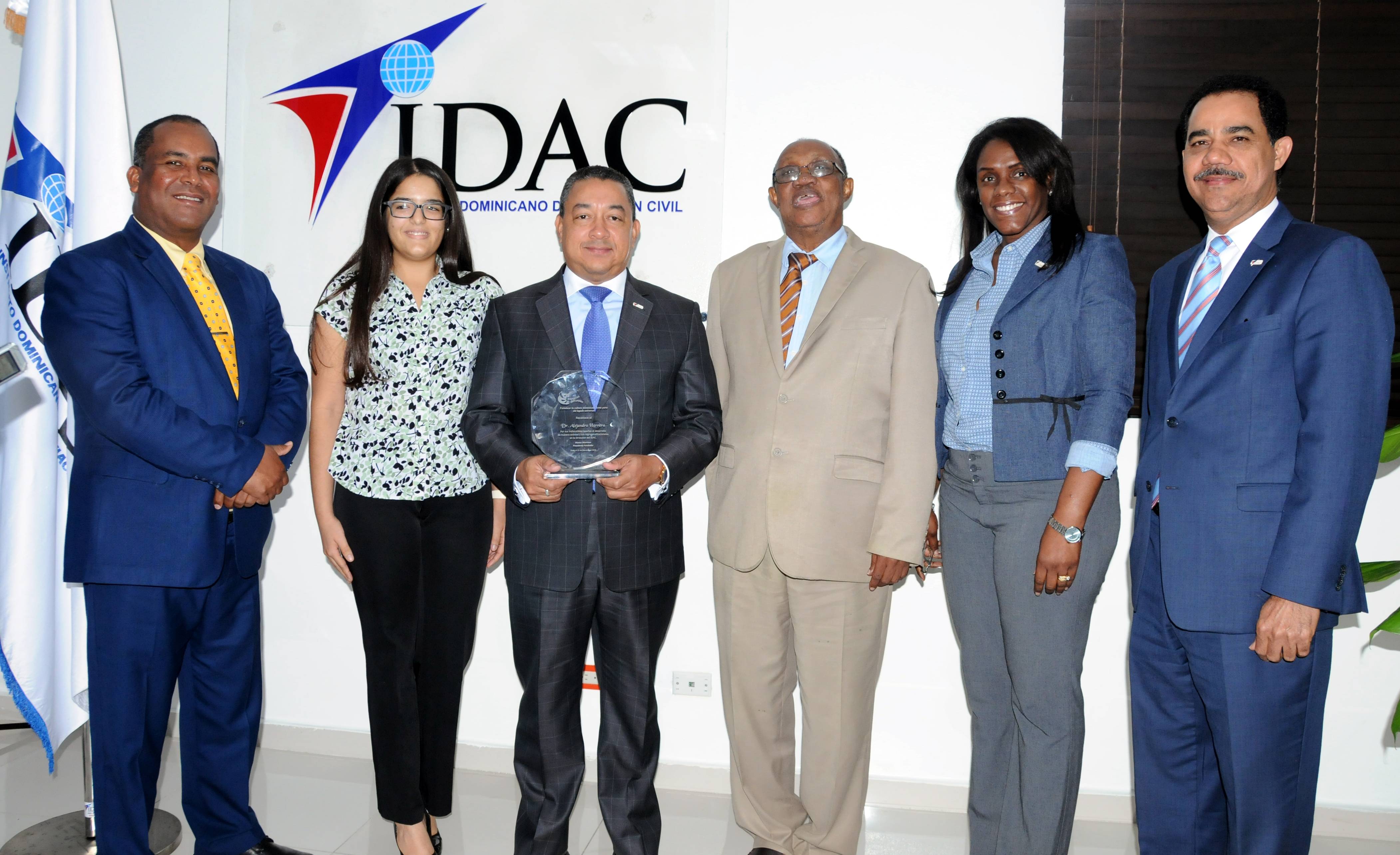 El subdirector general del IDAC Santiago Rosa Martínez, Betty Casteing de la Dirección de Planificación y Desarrollo, y el director legal Luis Valdez acompañaron al Dr. Herrera a recibir el reconocimiento.