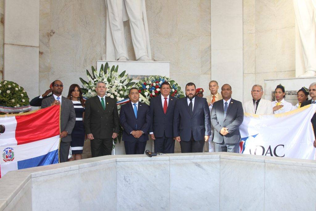 Al acto de ofrenda floral en el Altar de la Patria asistieron autoridades de la Junta de Aviación Civil (JAC), Melvin Cintrón, director regional para Norteamérica, Centroamérica y Caribe (NACC) de la Organización de Aviación Civil Internacional (OACI); el embajador Carlos Veras, representante de República Dominicana ante la OACI: Danny Castro, representante de la FAA; el subdirector general del IDAC Santiago Rosa Martínez y otros funcionarios de la institución e invitados especiales.La ofrenda se desarrolló con un desfile con los arreglos florales por la parte central del parque Independencia hasta depositar los arreglos florales al pie de las gigantes estatuas de los padres fundadores de la nacionalidad en el Altar de la Patria.
