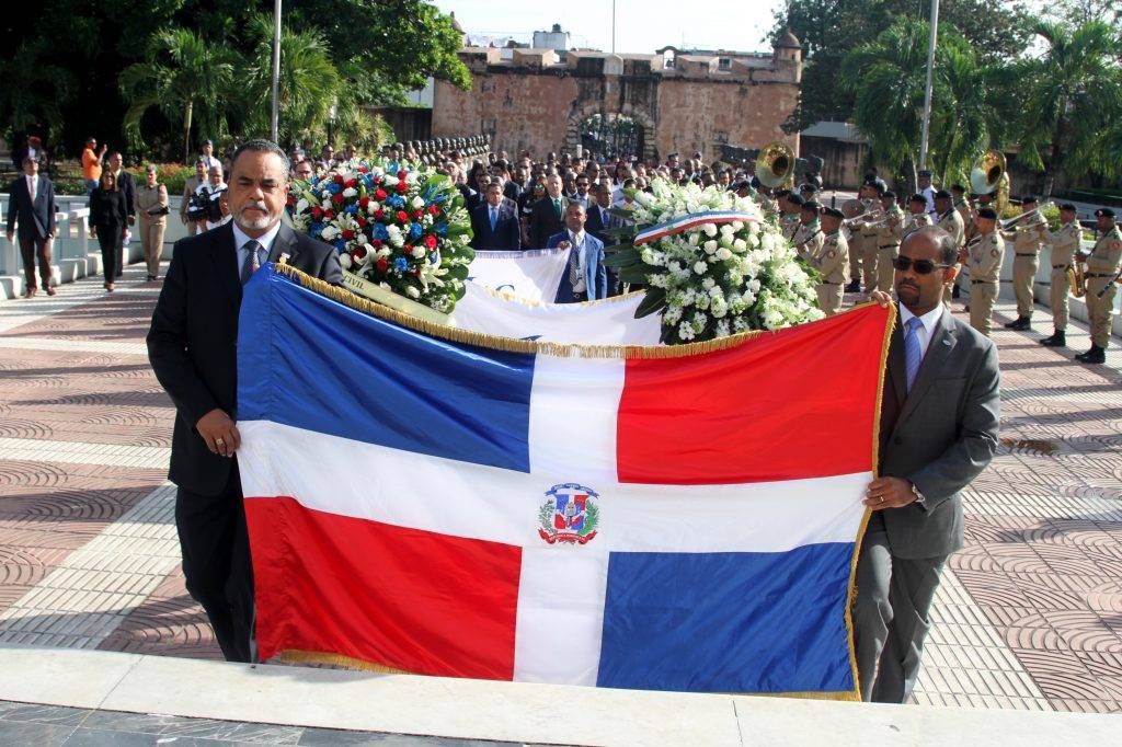 Al momento de depositar la ofrenda se escucharon las notas del himno nacional a cargo de una de las bandas de música del Ministerio de Defensa de la República Dominicana dirigida por el capitán José Durán Olivo.