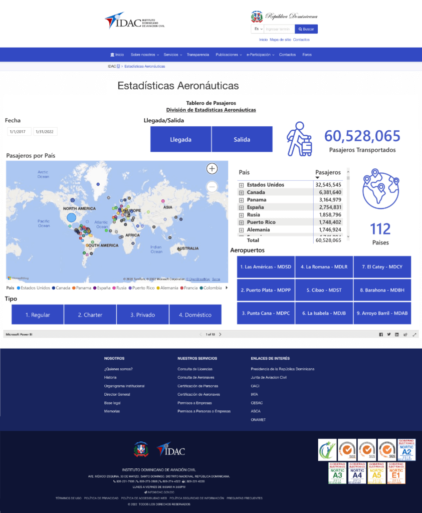Explicó también que el Instituto Dominicano de Aviación Civil (IDAC) ha desarrollado una herramienta de información inteligente o “dashboard” que cuenta con una data interactiva y de fácil interpretación, que será de sumo provecho para el sector aeronáutico.