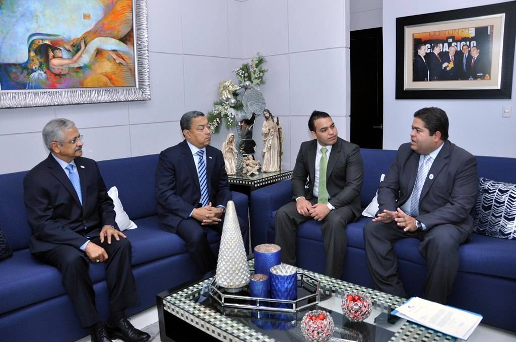 De izquiera a derecha, Gabriel Medina, director de Normas de Vuelo; Alejandro Herrera, director general del IDAC; Carlos García, representante de la OACI en materia de Cambio Climático y Juan José Veras, coordinador de la Comisión Nacional.