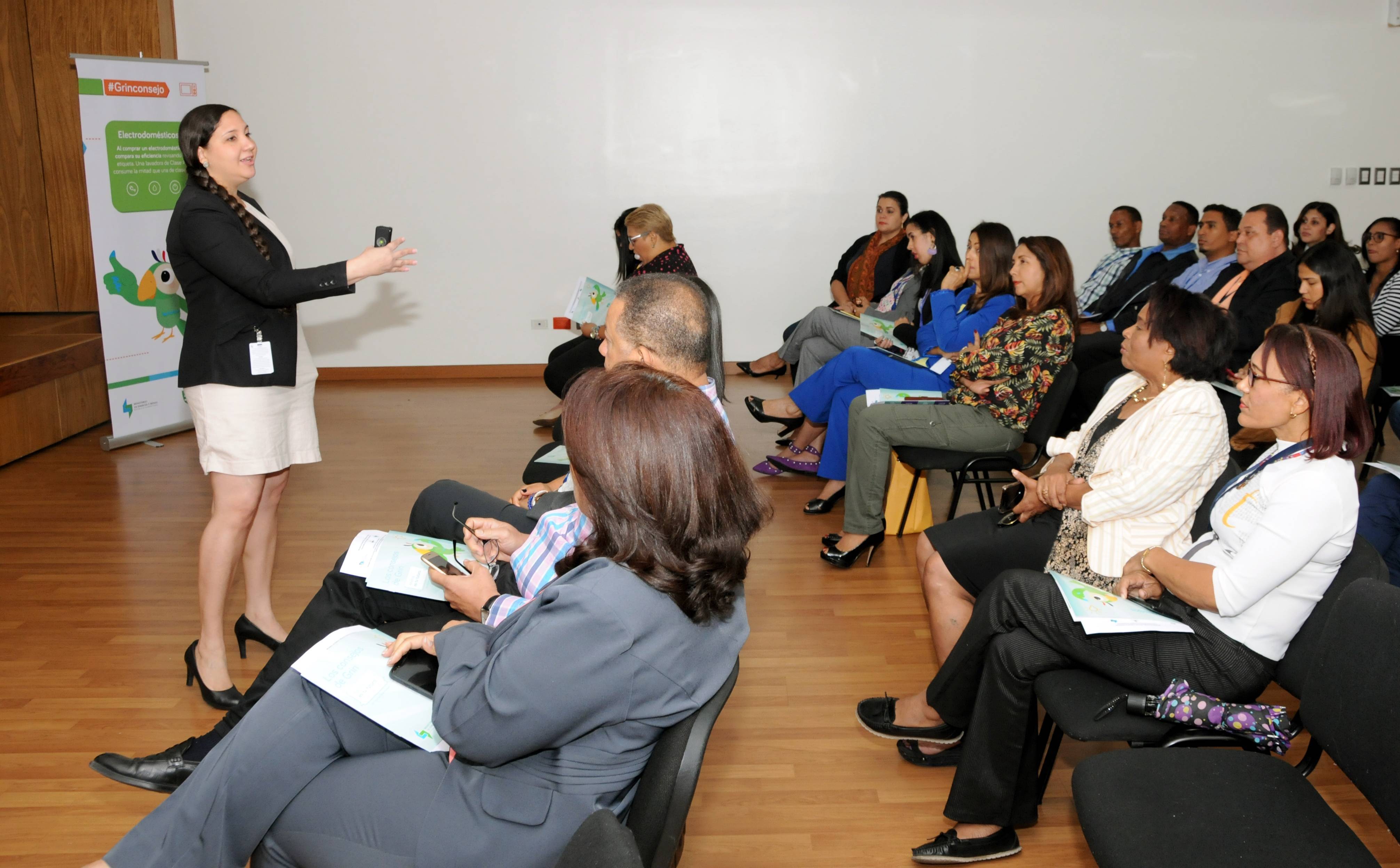 Durante la charla la facilitadora en eficiencia energética y representante del Ministerio de Energía y Minas, Carolina Rodríguez, trató el principal objetivo de la actividad, que no es otro que concienciar a todos los servidores públicos en el uso racional de los recursos para lograr una reducción en el consumo energético en las instituciones gubernamentales, con el propósito de cumplir la meta presidencial: reducción del 10 por ciento del consumo energético en instituciones gubernamentales seleccionadas 2017-2020.