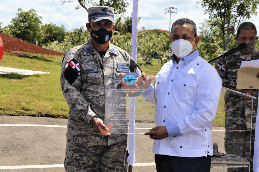 Mediante la entrega de una placa con la firma del mayor general piloto Richard Vásquez Jiménez, la Comandancia General de la FARD reconoció al Dr. Alejandro Herrera “por su incondicional apoyo e invaluables aportes al desarrollo histórico de la aviación”, como se inscribió en la placa.