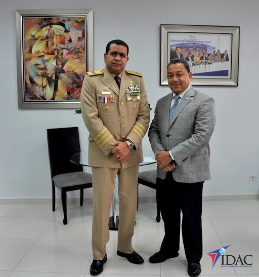 El teniente general Máximo William Muñoz Delgado, ministro de Defensa, en visita de cortesía al director general del Instituto Dominicano de Aviación Civil (IDAC), doctor Alejandro Herrera, en la sede principal de la institución en la Av. México esquina 30 de Marzo.