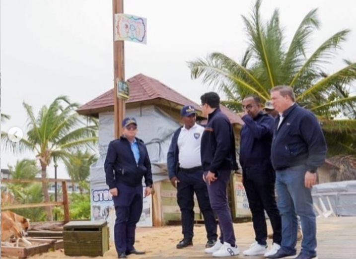 Playa Macao, Higüey.-El recorrido fue para verificar el cierre de Playa Macao en Punta Cana, ante los efectos del huracán Fiona y lo encabezan el ministro de Turismo, David Collado; el director general interino del Idac, Héctor Porcella; el director del Departamento Aeroportuario, Víctor Pichardo, entre otras autoridades.