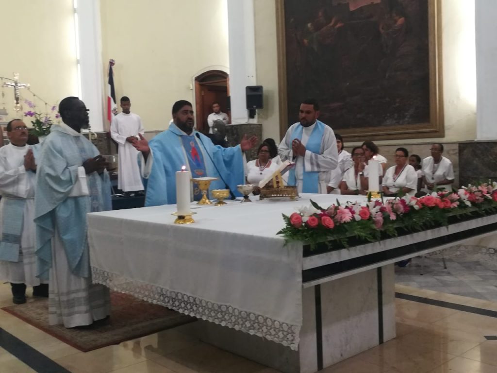 La celebración religiosa fue realizada en el marco del triduo dedicado a la Virgen de la Altagracia y la solemnidad de la Asunción de la virgen María, con la participación en las moniciones de las Hijas de María y el coro Theotokos.