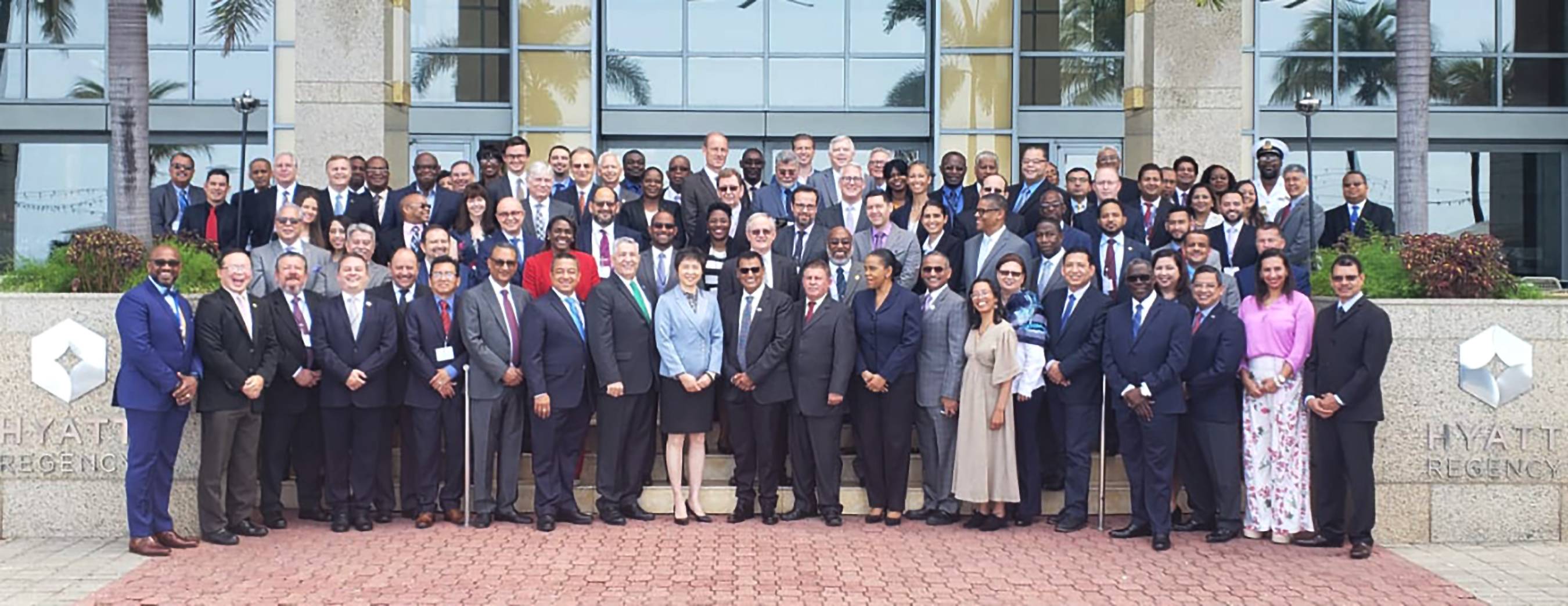 Trinidad y Tobago.- Fotografía oficial de los directores generales de las autoridades de aviación civil de los Estados y territorios de las regiones NAM/CAR de la OACI, sus ministros de Finanzas, Turismo y representantes de organizaciones internacionales invitados a la novena reunión de directores de Aviación Civil de Norteamérica, Centroamérica y el Caribe (NACC/DCA/09), que se desarrolla en Puerto España, Trinidad y Tobago.