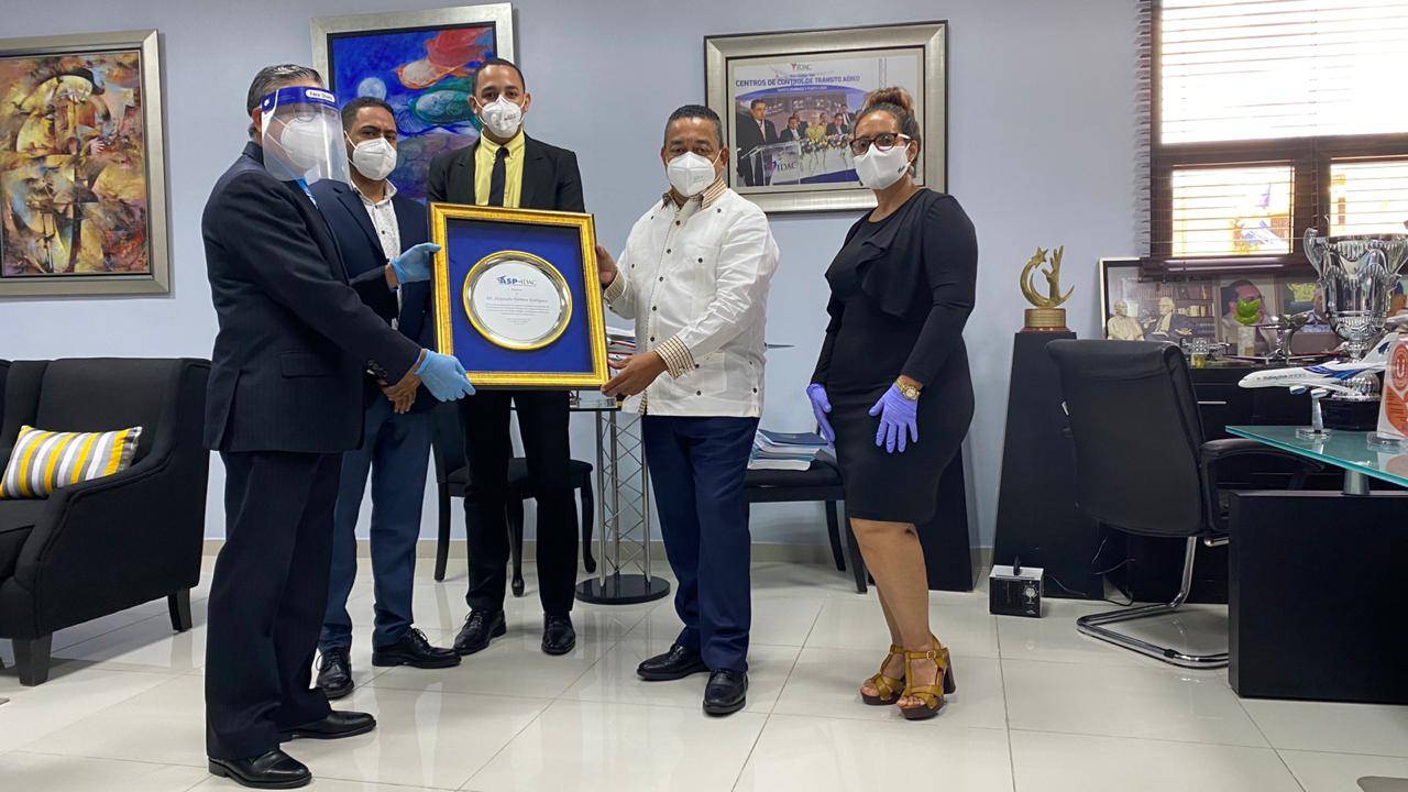 Los integrantes del comité ejecutivo de la Asociación de Servidores Públicos del IDAC (ASP-IDAC) acudieron a la sede de la dirección general y en una breve ceremonia, con el distanciamiento social y mascarillas, entregaron una placa a Herrera reconociendo sus aportes a la formación de la entidad que tiene como objetivo velar por los derechos de todos los servidores de esa entidad.