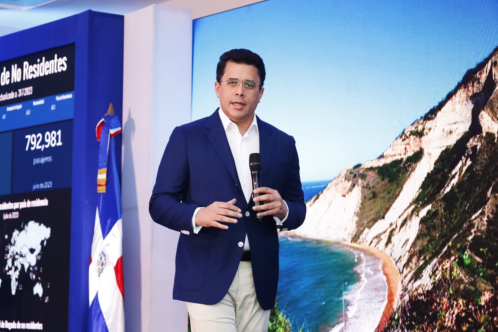 Presentación de estadísticas del sector turístico en el mes de julio de 2023, con la presentación del Ministro de Turismo David Collado, junto a el nuestro director general Hector Porcella. El evento se llevó a cabo el 9 de agosto de 2023, en el Hotel JW Marriot Santo Domingo.